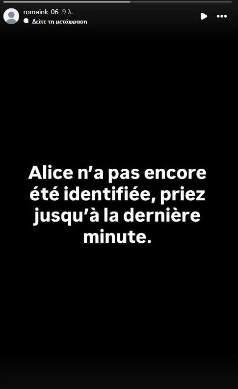 Νέα ανάρτηση, στην οποία αναφέρει πως δεν έχει ταυτοποιηθεί ακόμα η 15χρονη Αλίκη, που αγνοείται μετά την τραγωδία στο Κραν Μοντανά, έκανε ο αδελφός της, Ρομέν Καλλέργης.