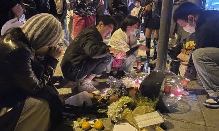 Άλλες φωτογραφίες δείχνουν μια αγρυπνία με κεριά μπροστά από ένα συγκρότημα πολυτελών διαμερισμάτων στον ίδιο δρόμο, ανάμεσα σε μια θάλασσα από λευκά κεριά, με μια χαρτονένια επιγραφή που γράφει: «Ουρούμτσι 24 Νοεμβρίου. Ας αναπαυθούν εν ειρήνη όσοι πέθαναν».