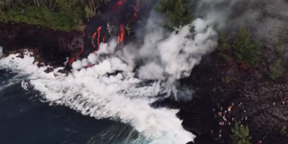 Από την επαφή το θαλασσινό νερό εξατμίστηκε και δημιουργήθηκε μία ομίχλη λάβας, ένα μείγμα που συνήθως αποτελείται από ατμό, υδροχλωρικό οξύ και μικροσκοπικά σωματίδια γυαλιού, το οποίο είναι επικίνδυνο όταν εισπνέεται και προκαλεί ερεθισμό στα μάτια και το δέρμα.