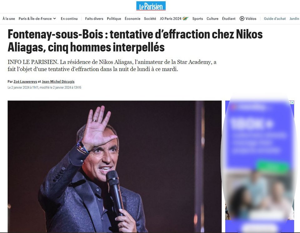Σύμφωνα με τη «Le Parisien», στην προσπάθειά τους να εισβάλουν στο σπίτι του Νίκου Αλιάγα, οι πέντε διαρρήκτες προκάλεσαν φθορές στην πόρτα του σπιτιού, αλλά δεν κατάφεραν να μπουν μέσα στο οίκημα. Όπως αναφέρεται ακόμη, ο δημοσιογράφος/παρουσιαστής δεν ήταν εκεί την ώρα του συμβάντος.