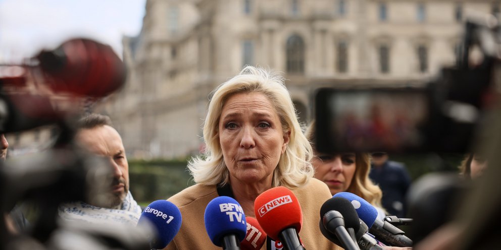 Σε αντίθεση με τη συνήθη επιθετική της ρητορική, η Λεπέν εμφανίζεται το τελευταίο διάστημα πιο συγκρατημένη, καθώς οι πιθανότητες δικαίωσής της φαίνεται να μειώνονται.
