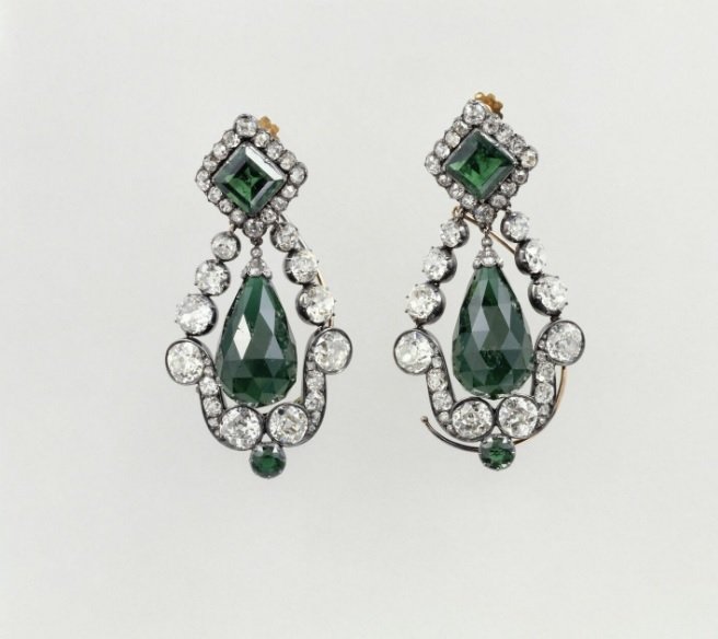 -Σμαραγδένια σκουλαρίκια από το σετ της Μαρί-Λουίζ.
