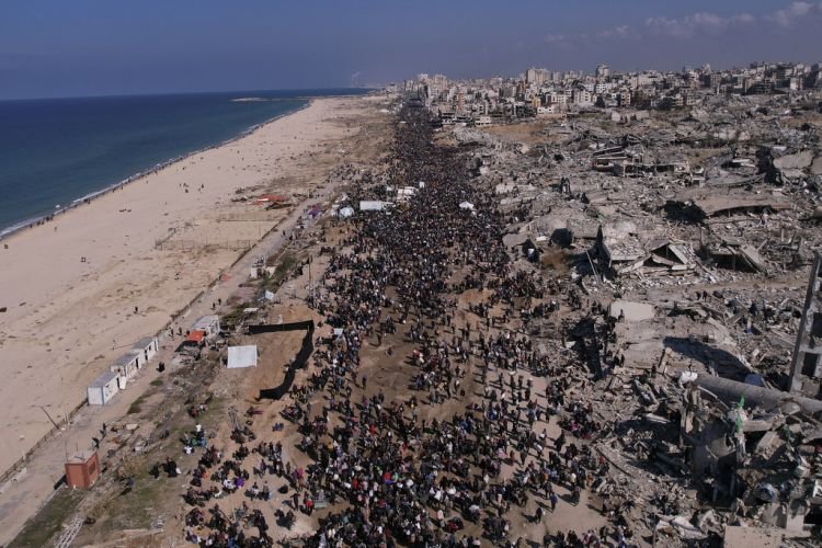 Μια λαοθάλασσα ξεκίνησε να κατευθύνεται από χθες στο βόρειο τμήμα της Λωρίδας της Γάζας, που έχει σχεδόν ισοπεδωθεί έπειτα από 15 μήνες πολέμου.
