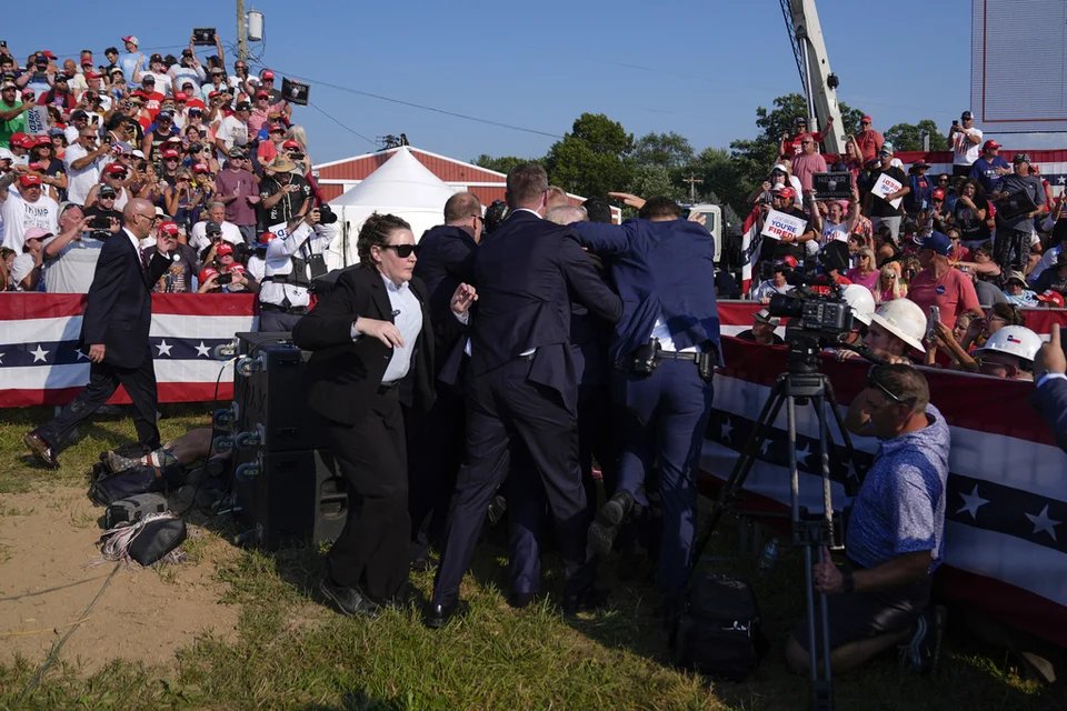 Ανθρωποι που ήταν στις εξέδρες κατά τη διάρκεια της ομιλίας του υποψηφίου προέδρου των ΗΠΑ περιέγραψαν τις δραματικές στιγμές όταν έπεσαν οι πυροβολισμοί.