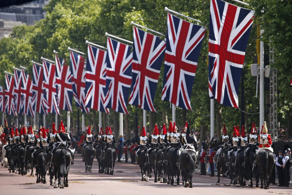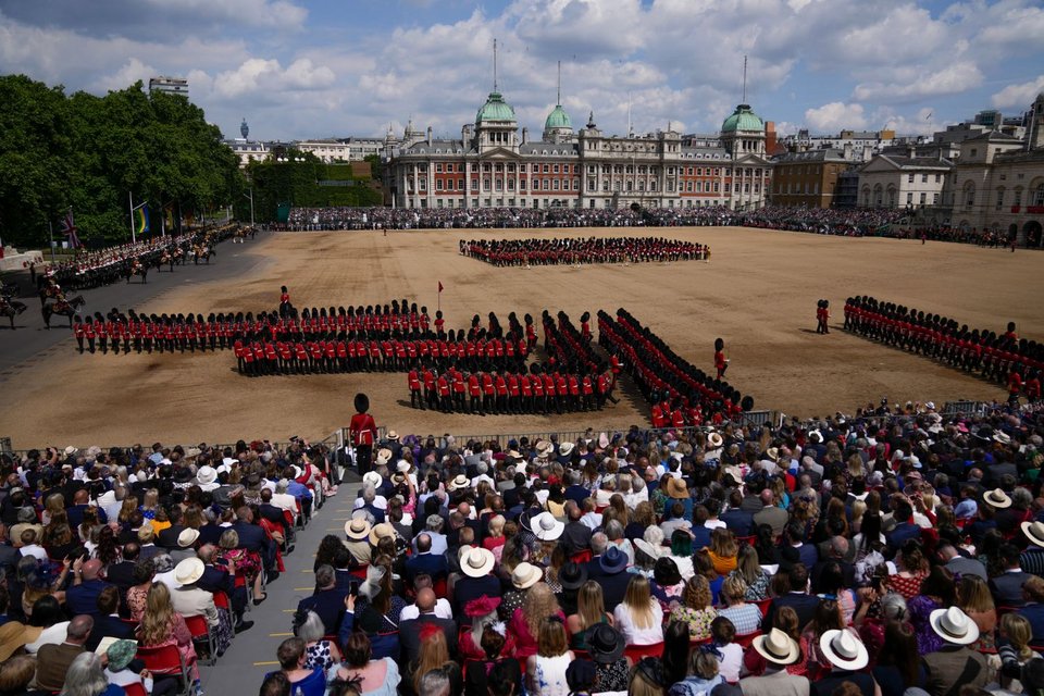 Η παραδοσιακή στρατιωτική παρέλαση «Trooping The Colour» ξεκίνησε λίγο πριν από το μεσημέρι, και συμμετείχαν σε αυτή 1.400 στρατιώτες, 200 άλογα και 400 μουσικοί, σηματοδοτώντας τα επίσημα γενέθλια της βασίλισσας Ελισάβετ.
