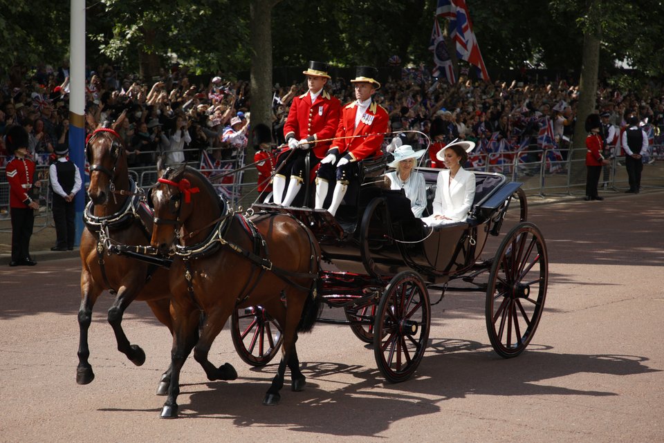 Μέχρι πριν από την πανδημία, η βασίλισσα έφτανε με άμαξα στο παλάτι του Μπάκιγχαμ, αλλά φέτος, εξαιτίας των προβλημάτων υγείας που αντιμετωπίζει, παρακολουθεί την παρέλαση από το μπαλκόνι. Τη θέση της έχει πάρει ο πρίγκιπας Κάρολος, ο διάδοχος του βασιλικού θρόνου, όπου συνοδευόταν έφιππος από τον γιο του, πρίγκιπα Γουίλιαμ, και την αδελφή του, πριγκίπισσα Άννα.
