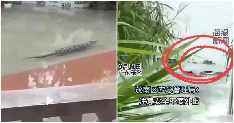 Επτά άνθρωποι έχασαν τις ζωές τους από τις πλημμύρες στην πόλη Μαομίνγκ, σύμφωνα με κινεζικά ΜΜΕ, καθώς οι κροκόδειλοι κολυμπούν στους πλημμυρισμένους δρόμους.