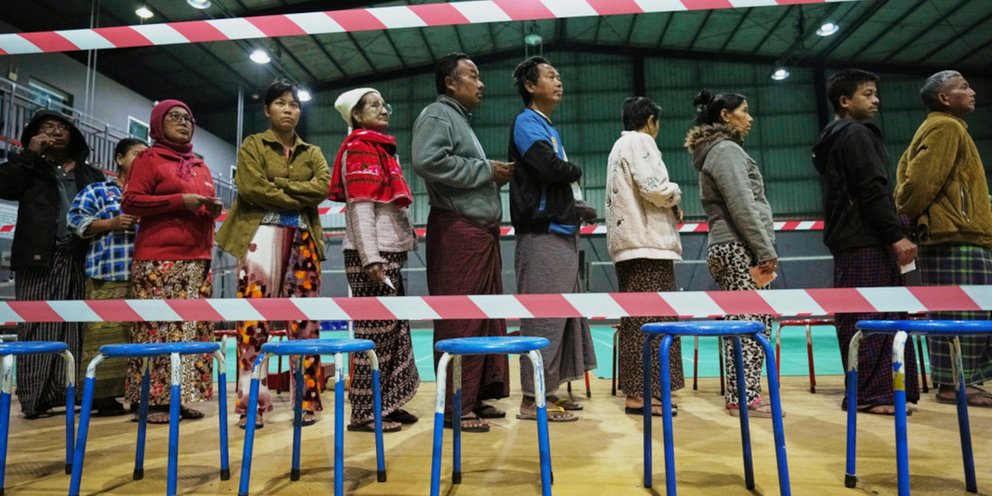 Μία εβδομάδα πριν από την πέμπτη επέτειο του πραξικοπήματος, η τρίτη και τελευταία φάση των βουλευτικών εκλογών, που έγιναν σε διάστημα ενός μήνα, ξεκίνησε σήμερα σε δεκάδες εκλογικά τμήματα. Η χούντα παρουσιάζει τις εκλογές ως επιστροφή στη δημοκρατία, παρόλο που δεν μπορούν να διεξαχθούν στις τεράστιες περιοχές που ελέγχονται από τους αντάρτες και το κόμμα της Αούνγκ Σαν Σου Τσι, που παραμένει φυλακισμένη, έχει διαλυθεί.