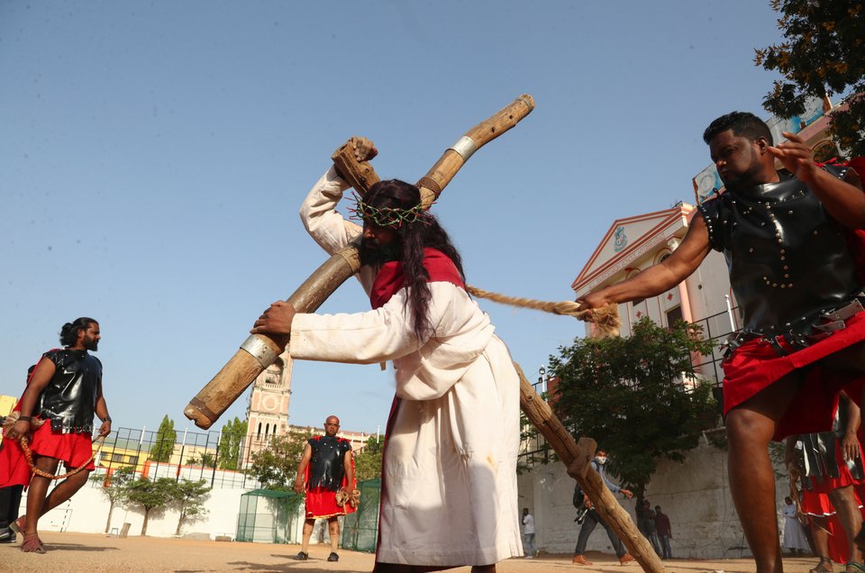 Φέτος, ωστόσο, Φραγκισκανοί μοναχοί ηγήθηκαν της πομπής εκατοντάδων πιστών στην Οδό του Μαρτυρίου (Via Dolorosa), βαδίζοντας στα χνάρια του Ιησού -και του Σίμωνα του Κυρηναίου- μέχρι τον Γολγοθά, ψάλλοντας ύμνους με τηλεβόες.