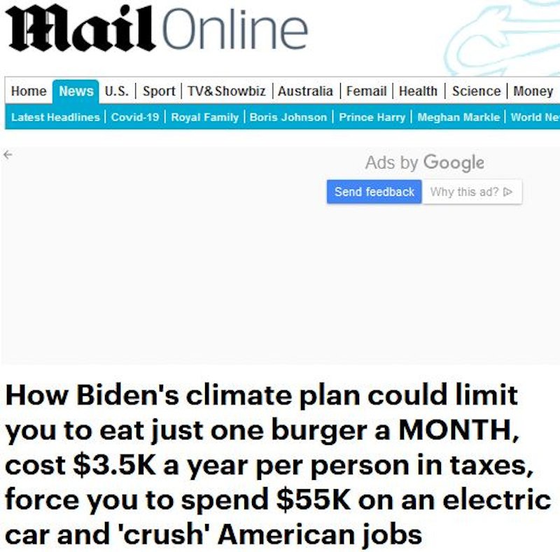 «Εμείς καταστήσαμε σαφές ότι τέτοια μέτρα ΘΑ ΜΠΟΡΟΥΣΑΝ να ληφθούν», είπε ο εκπρόσωπος της «Daily Mail». Όμως Ρεπουμπλικανοί σχολιαστές και ΜΜΕ έσπευσαν να τα παρουσιάσουν ως βεβαιότητα. «Οι απαιτήσεις του Μπάιντεν για το κλίμα: κόψτε το 90% του κόκκινου κρέατος από τη διατροφή σας. Οι Αμερικανοί θα μπορούν να τρώνε μόνο ένα μπέργκερ τον μήνα», έγραψε την Παρασκευή ο συντηρητικός ιστότοπος Gateway Pundit, επικαλούμενος το δημοσίευμα της «Daily Mail».