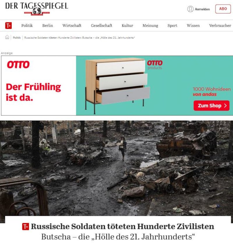 Και σχολιάζει: «Η Ρωσία κάνει τις κινήσεις της, η διεθνής κοινότητα τις δικές της. Ψύχραιμα, με υπολογισμούς, λογικά. Αλλά δεν πρόκειται για μια παρτίδα σκακιού. Οι εικόνες από την Μπούκα δείχνουν το εξής: ότι ένας πόλεμος μεταξύ στρατών έχει μετατραπεί σε σφαγή αμάχων, σε βαρβαρότητα. Κανόνες δεν υπάρχουν, μόνο ένας πόλεμος, στον οποίο το Κρεμλίνο χάνει τον έλεγχο».