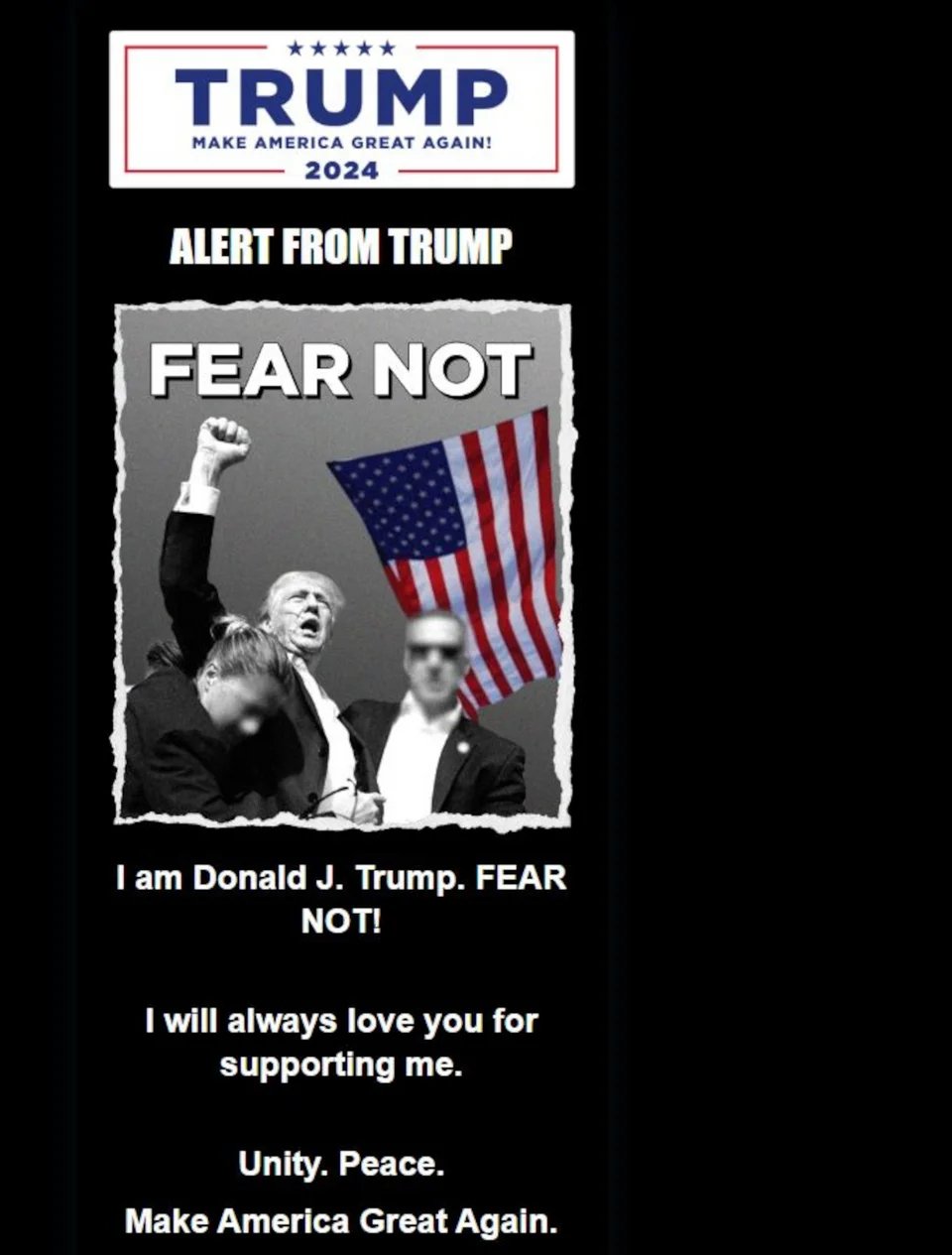 Η φωτογραφία του Ντόναλντ Τραμπ φέρει λεζάντα με τις λέξεις «FEAR NOT».
