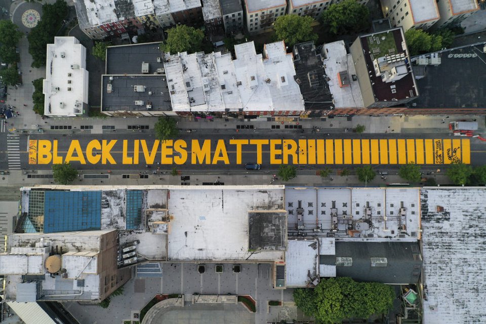 Έξι εβδομάδες μετά τη δολοφονία του Τζορτζ Φλόιντ από λευκό αστυνομικό στην Μινεάπολη στις 25 Μαΐου, η περίφημη λεωφόρος της Νέας Υόρκης βάφτηκε με το σλόγκαν του ιστορικού αντιρατσιστικού κινήματος υπό το βλέμμα πολλών φωτογράφων και τηλεοπτικών δικτύων.