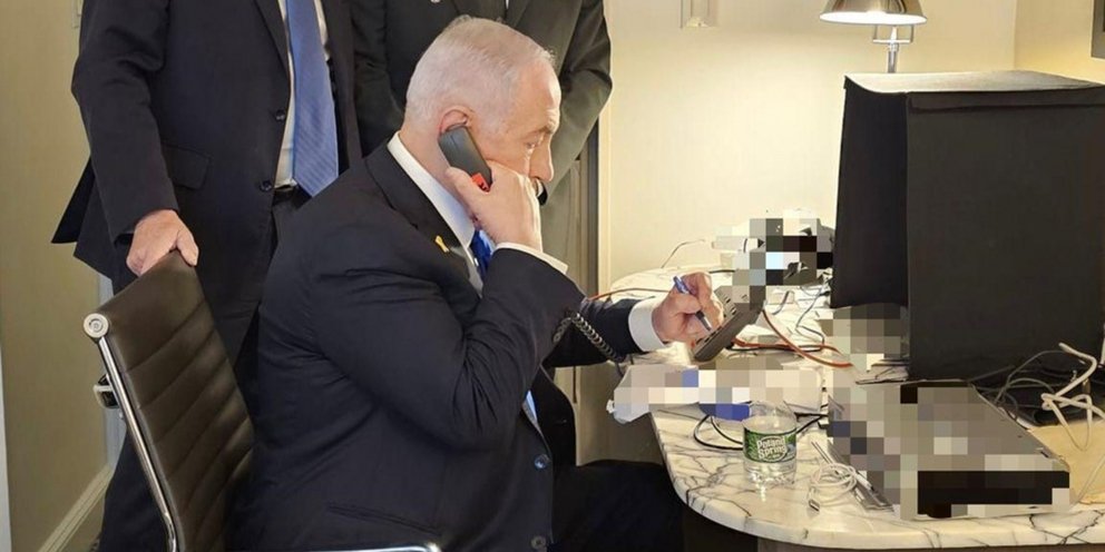 Η φωτογραφία φαίνεται να δείχνει τον Νετανιάχου στο ξενοδοχείο του στη Νέα Υόρκη, μαζί με στρατιωτικό αξιωματούχο και τον αρχηγό του επιτελείου του.
