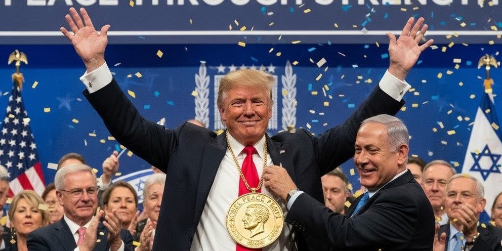 «Δώστε το βραβείο Νόμπελ Ειρήνης στον Ντόναλντ Τραμπ, το αξίζει!», έγραφε ανάρτηση στον επίσημο λογαριασμό του γραφείου του Ισραηλινού πρωθυπουργού στο Χ και συνόδευσε την προτροπή με μια εικόνα φτιαγμένη με Τεχνητή Νοημοσύνη στην οποία εμφανίζεται ο ίδιος σε πανηγυρικό κλίμα να φορά το βραβείο-μετάλλιο στον Ντόναλντ Τραμπ.