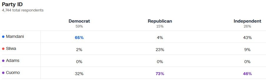 Τα ποσοστά του Μαμντάνι στους νέους ψηφοφόρους είναι άκρως εντυπωσιακά, ενδεικτικά της αποδοχής που βρήκε η ατζέντα του για το κόστος διαβίωσης στις ηλικίες έως 44 ετών.