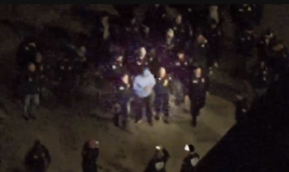 Ο ανταποκριτής του Sky News Τζέιμς Μάθιους είπε ότι το πρόσωπο που κατέβηκε τις σκάλες «φαίνεται να είναι ξυπόλητο... με καλυμμένο το κεφάλι». Φορούσε χειροπέδες και τα πόδια του ήταν επίσης δεμένα.