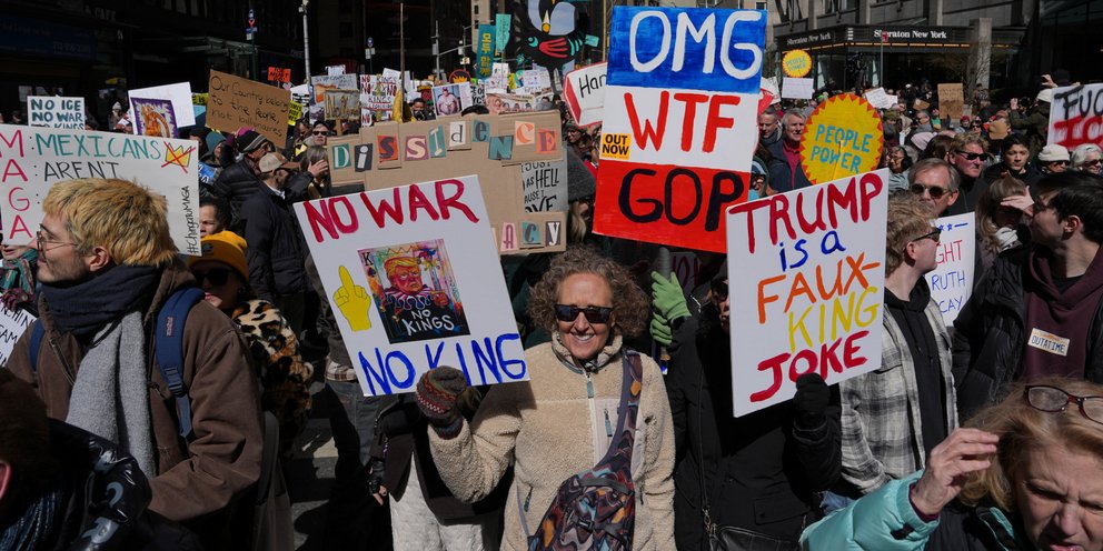 «Όχι Βασιλιάδες, Όχι ICE, Όχι Πόλεμος»: Χιλιάδες πορείες πραγματοποιήθηκαν το Σάββατο σε όλες τις ΗΠΑ κατά του Ντόναλντ Τραμπ, της αντιμεταναστευτικής του πολιτικής και του πολέμου στο Ιράν.