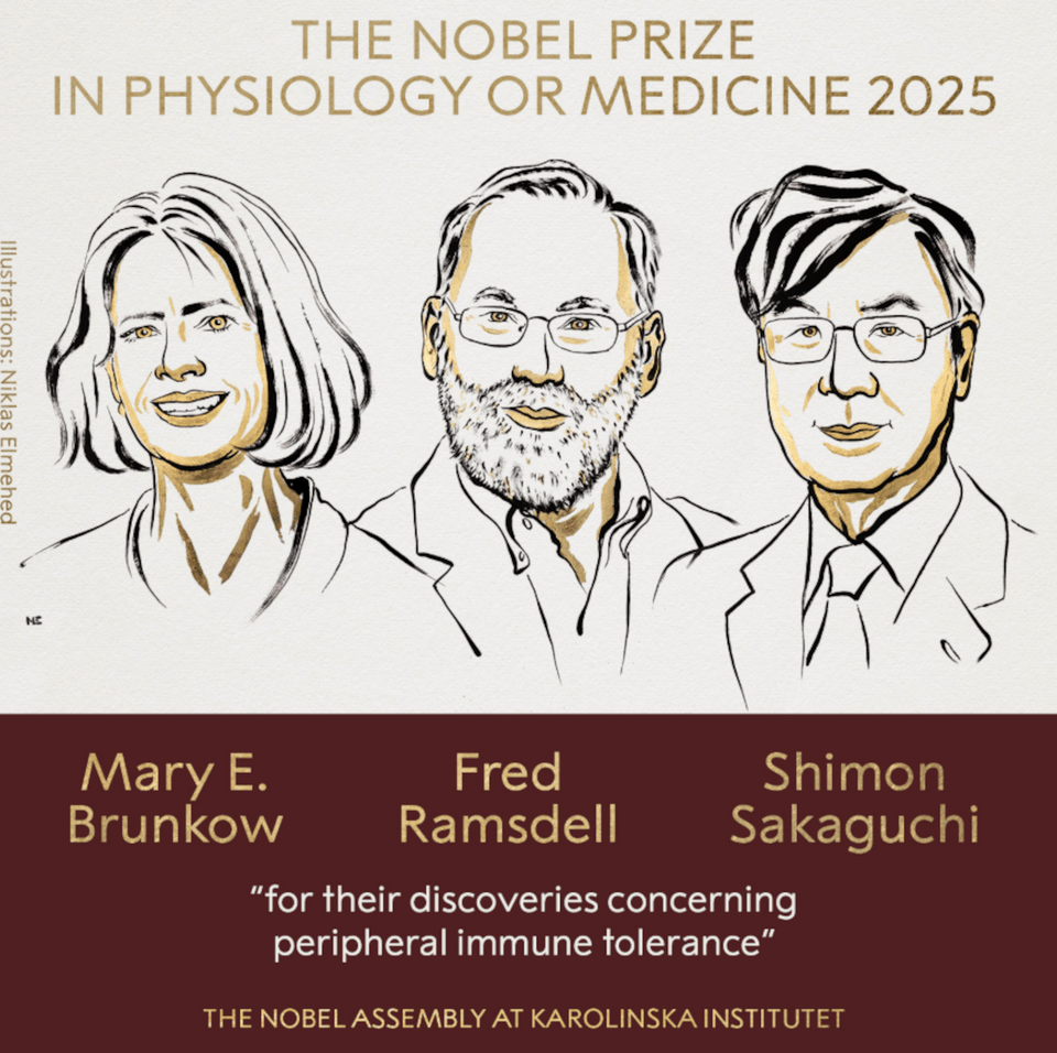 Το Νόμπελ Ιατρικής 2025 απονεμήθηκε σήμερα στους Mary E. Brunkow, Fred Ramsdell και Shimon Sakaguchi.