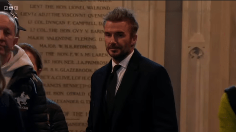 Ο Ντέιβιντ Μπέκαμ πλησίασε το φέρετρο της βασίλισσας περίπου στις 3.30 μ.μ. (ώρα Αγγλίας), έπειτα από 13 ώρες στην ουρά, και έσκυψε το κεφάλι του για λίγα δευτερόλεπτα, πριν προχωρήσει για να ανοίξει δρόμο για τους ανθρώπους πίσω του.