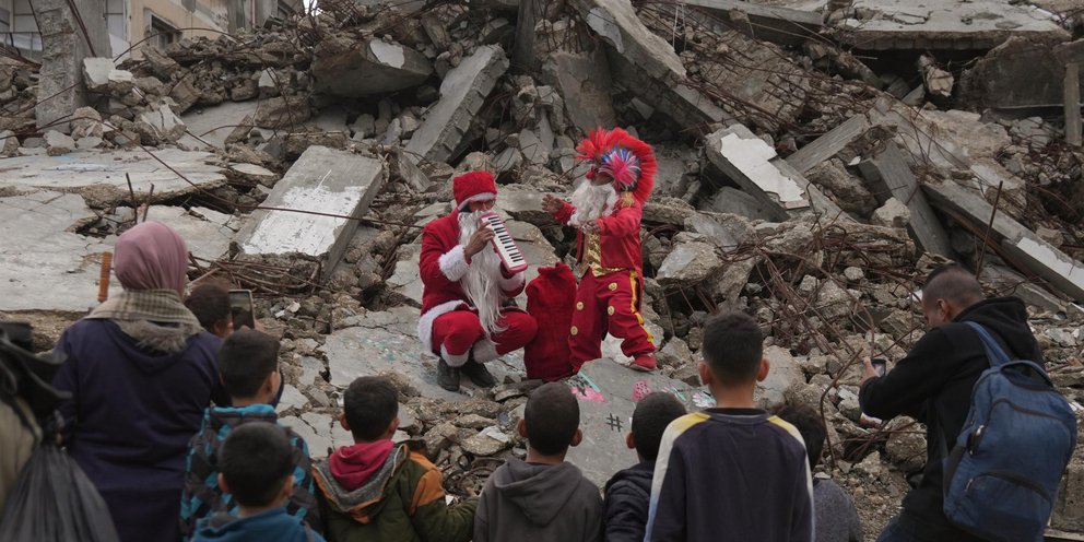 Ο Άγιος Βασίλης ανάμεσα στα συντρίμμια της Γάζας: Μια εικόνα που ζητά ειρήνη