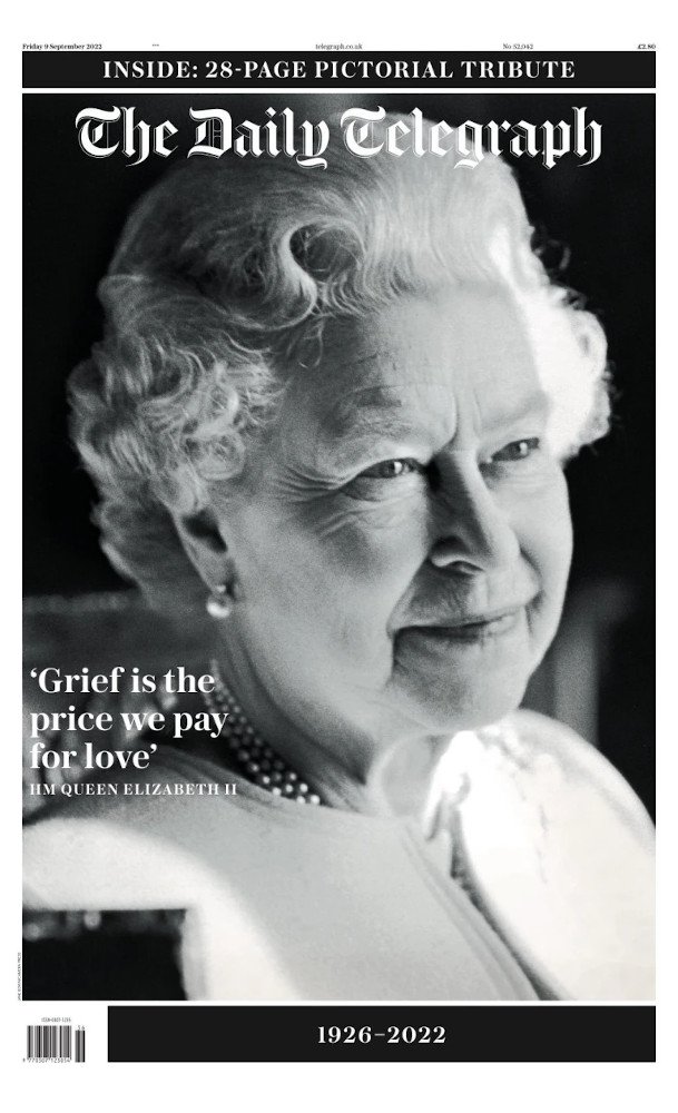 Η Daily Telegraph διάλεξε για τίτλο το απόφθεγμα της βασίλισσας Ελισάβετ «η θλίψη είναι το τίμημα που πληρώνουμε για την αγάπη».