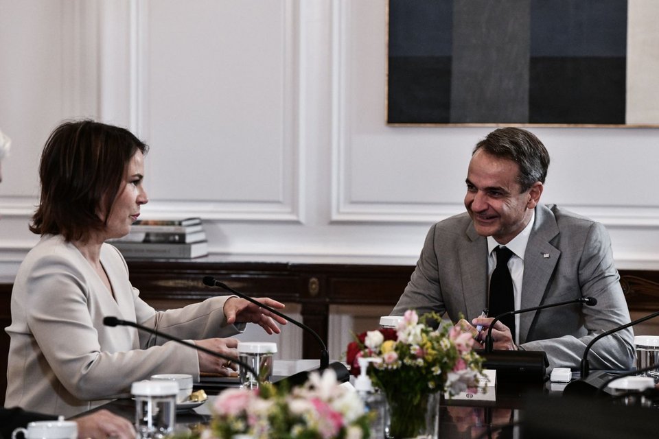 Ο πρωθυπουργός ενημέρωσε την υπουργό Εξωτερικών της Ομοσπονδιακής Δημοκρατίας της Γερμανίας για τις τελευταίες εξελίξεις στις ελληνοτουρκικές σχέσεις. Επανέλαβε την πάγια θέση της χώρας μας ότι η Ελλάδα επιθυμεί ανοικτούς διαύλους επικοινωνίας με την Τουρκία, στη βάση του Διεθνούς Δικαίου και των σχέσεων καλής γειτονίας. Υπογράμμισε, ωστόσο, ότι οι τουρκικές προκλήσεις και αμφισβητήσεις κυριαρχίας αποτελούν απειλή για την περιφερειακή σταθερότητα και δεν μπορούν να γίνουν ανεκτές ούτε από την Ελλάδα ούτε από την Ευρωπαϊκή Ενωση.