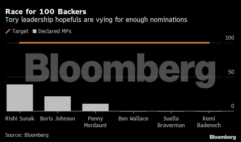 Ο Σούνακ έχει την υποστήριξη 39 βουλευτών, έναντι 25 βουλευτών που στηρίζουν τον Μπόρις Τζονσον και 11 την Penny Mordaunt.