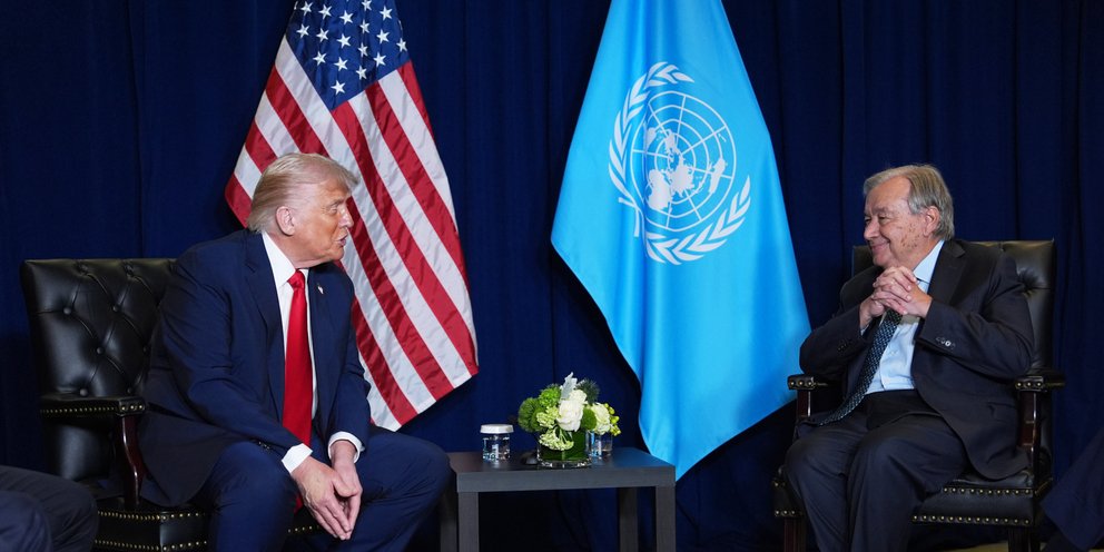 Ο Γενικός Γραμματέας αναγνώρισε «τις προσπάθειες του Προέδρου Τραμπ για την επίλυση συγκρούσεων σε όλο τον κόσμο» και εξέφρασε «τη διάθεση των Ηνωμένων Εθνών να συνεργαστούν με τις Ηνωμένες Πολιτείες στην επιδίωξη της ειρήνης».