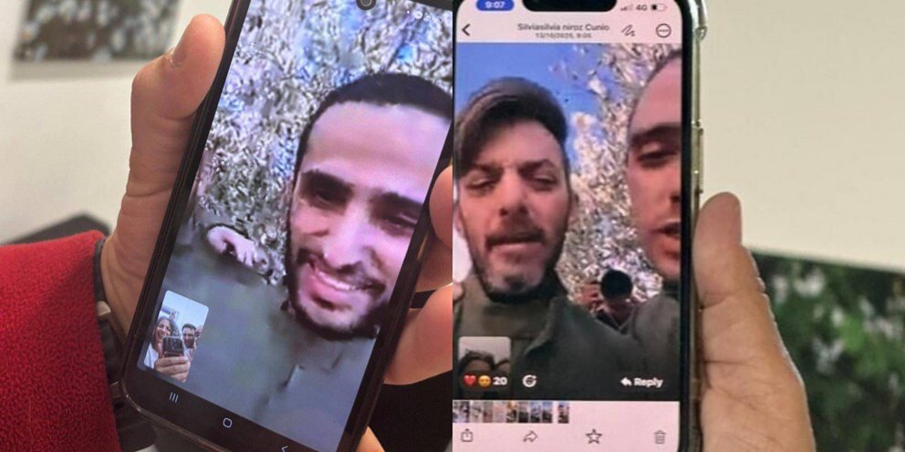 Τα δύο αδέλφια Κούνιο εμφανίστηκαν στη βιντεοκλήση με ψεύτικες στολές παραλλαγής, σαν κι αυτές που φορούσαν οι όμηροι που απελευθερώθηκαν στις αρχές του έτους. «Είναι καλά», είπε η μητέρα.