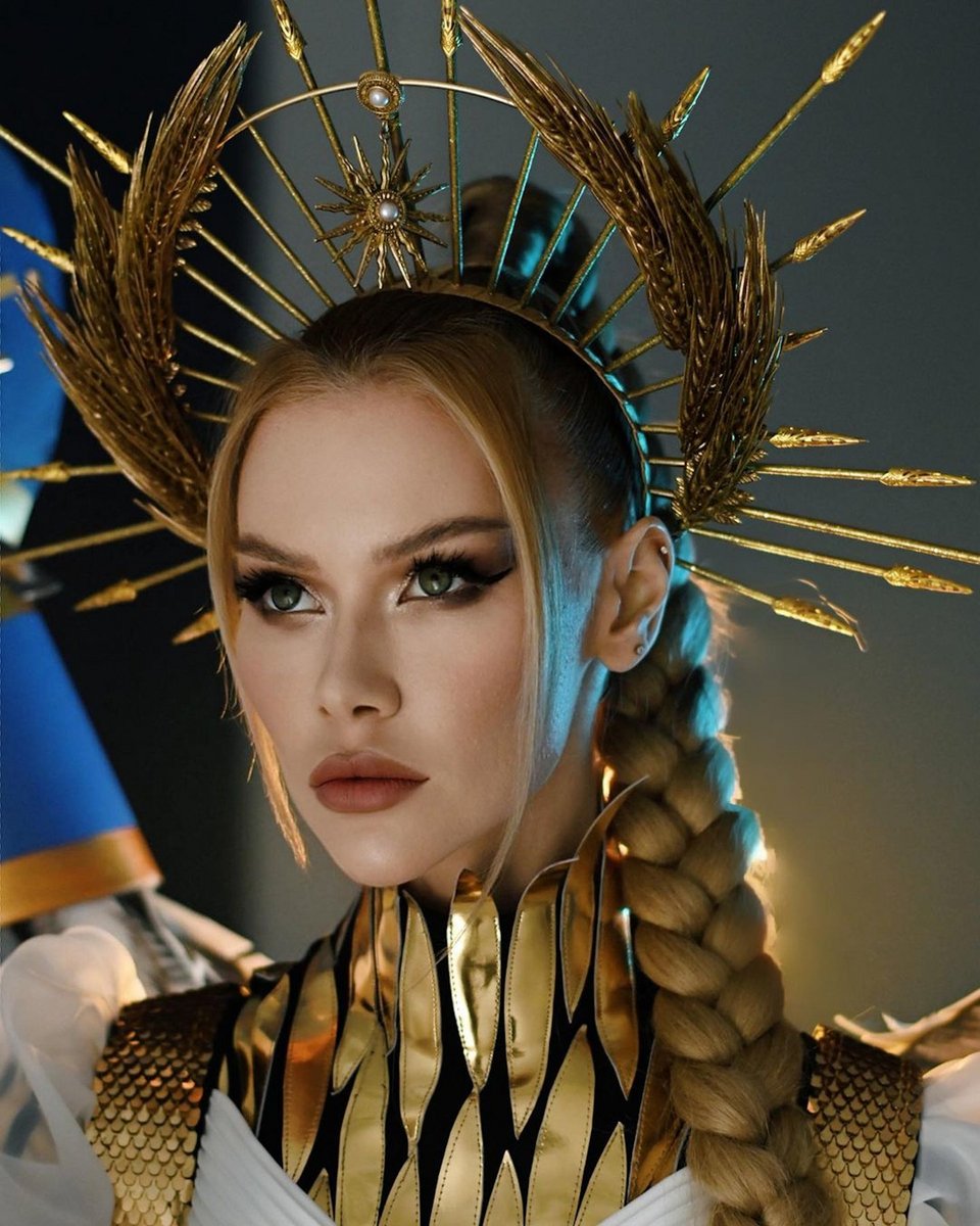 «Το κοστούμι ''Warrior of Light'' (''Πολεμίστρια του φωτός'') συμβολίζει τον αγώνα του έθνους μας ενάντια στο σκοτάδι», ανέφερε η λεζάντα της Μις Ουκρανίας, Βικτόρια Απανασένκο, στο Instagram.