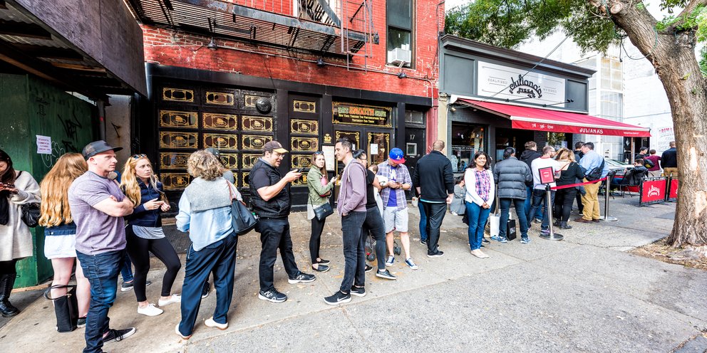Ο ειδικός γαστρονομίας Joe DiStefano από το Κουίνς συμφωνεί: «Η μεγάλη ουρά είναι πλέον κομμάτι της εμπειρίας φαγητού στη Νέα Υόρκη. Υπήρχε πάντα στα κλασικά στέκια, όπως το Katz’s ή το Emilio’s Ballato, αλλά μετά την πανδημία έχει εκτοξευθεί - σε φούρνους, εστιατόρια, παντού».