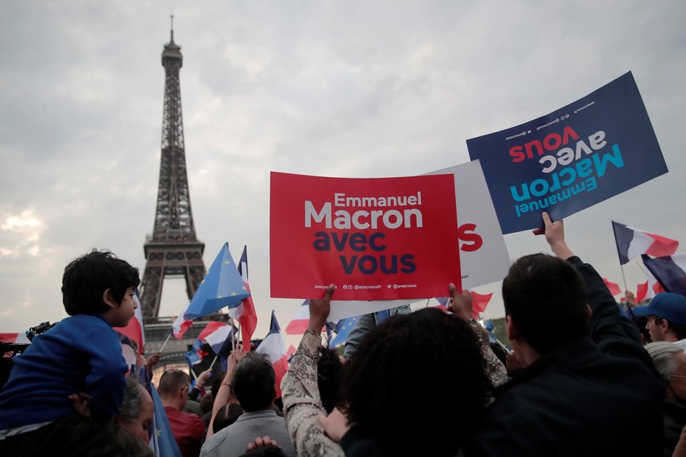 Πανηγύρια στον Πύργο του Άιφελ από οπαδούς του Μακρόν, γιουχαϊσματα εναντίον του στο αρχηγείο της Λεπέν.