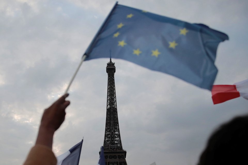 Εκκωφαντικοί πανηγυρισμοί μέσα σε μια θάλασσα σημαιών της Γαλλίας και της ΕΕ ξέσπασαν κάτω από τον Πύργο του Άιφελ μόλις ανακοινώθηκαν τα πρώτα επίσημα exit poll και επιβεβαιώθηκε ότι ο Μακρόν θα παραμείνει πρόεδρος της Γαλλίας για άλλα πέντε χρόνια.