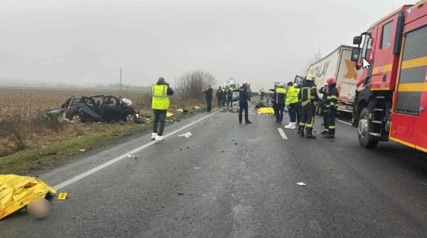 Όπως μετέδωσαν ΜΜΕ της Ρουμανίας, το δυστύχημα σημειώθηκε γύρω στη 1 μετά το μεσημέρι στο χωριό Λαγκόζ, κοντά στην πόλη Τιμισοάρα, ενώ συνολικά ενεπλάκησαν μετά τη σύγκρουση του βαν με ένα βυτιοφόρο, ένα φορτηγό και ένα ακόμη όχημα.