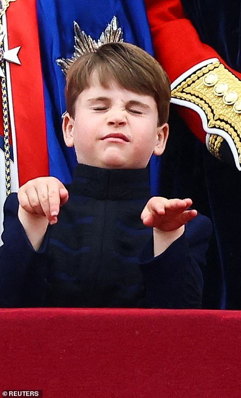 Το σκηνικό ήταν ανάλογο με την εμφάνιση του πρίγκιπα Λούις στο μπαλκόνι του Μπάκιγχαμ το περασμένο καλοκαίρι για το Ιωβηλαίο της Βασίλισσας Ελισάβετ, όπου και πάλι έκλεψε τις εντυπώσεις κάνοντας μια σειρά από ξεκαρδιστικές γκριμάτσες - μεταξύ άλλων κάλυψε τα αυτιά του μπροστά στη βασίλισσα, όταν ο ήχος από τα αεροπλάνα έγινε υπερβολικός κατά τη διάρκεια του περάσματος. Την επομένη, έδωσε ρέστα στη συναυλία που δόθηκε στο πλαίσιο του ιωβηλαίου. Για αυτό και όλοι θεωρούν έως και απίθανο να παραστεί στην αυριανή συναυλία για τον Κάρολο...