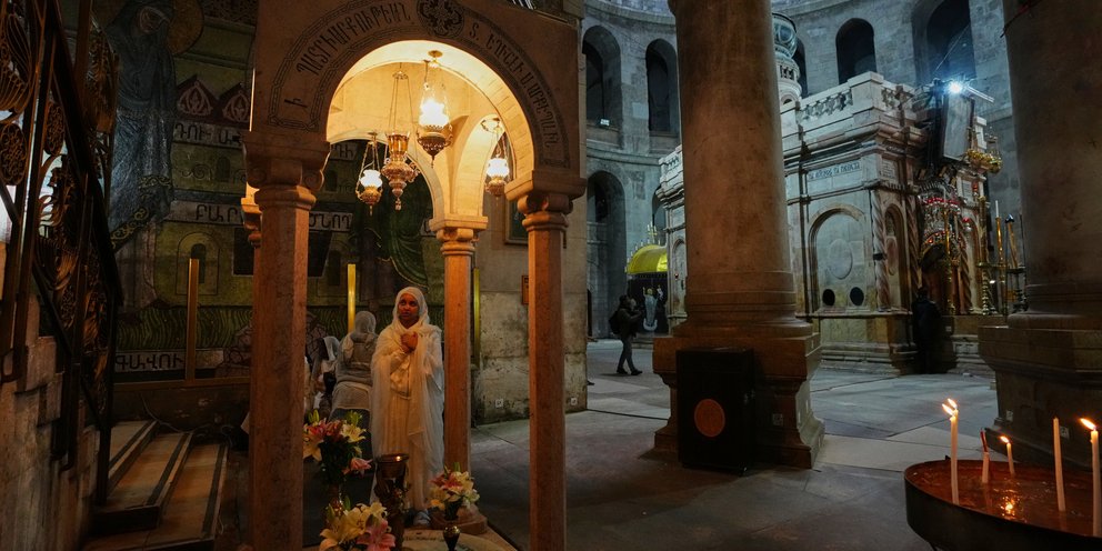 Στη βασιλική του Παναγίου Τάφου, οι πρώτες λειτουργίες μετά από εβδομάδες που παρέμεναν ανενεργές, γέμισαν τους πιστούς με ανακούφιση.