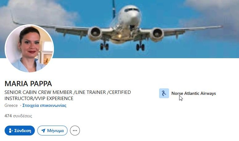 «Είχαμε συνεργαστεί. Ηταν ένα παιδι που γνώριζα πριν γινει αεροσυνοδος. Εργαζόταν ως security αρχικά στην Ολυμπιακή, στο check in για τα πληρώματα. Ηθελε να γίνει αεροσυνοδός και προσλήφθηκε σαν εποχιακή. Οταν έκλεισε η Ολυμπιακή, βρήκε μόνη της την άκρη της. Πήγε σε ιδιωτικές εταιρείες. Μέχρι τώρα συνέχιζε την καριέρα της, είτε σαν μόνιμο προσωπικό είτε σαν εποχιακή. Ηταν το πάθος της, όπως όλων μας. Είναι μικρόβιο αυτή η δουλειά» είπε αρχικά.