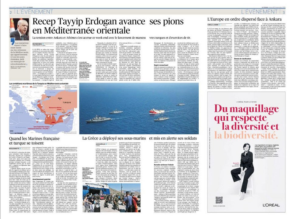 Στο άρθρο μεταφέρεται ένα επεισόδιο μεταξύ του γαλλικού πλοίου Tornerre και ενός τουρκικού στην Ανατολική Μεσόγειο, που κατά τον αρθρογράφο αντικατοπτρίζει τις κακές σχέσεις που έχουν αναπτυχθεί το τελευταίο διάστημα μεταξύ Γαλλίας και Τουρκίας. «Κατευθυνόμενο προς τον Λίβανο, για να μεταφέρει γαλλική βοήθεια στη Βηρυτό, που καταστράφηκε από την έκρηξη της 4ης Αυγούστου, το Tonnerre επιτέλους έφτασε, αφού, μετά από μία κοινή ναυσιπλοΐα με το ελληνικό Ναυτικό, η γαλλική φρεγάτα συνοδεύτηκε ευέλικτα από ένα τουρκικό πλοίο».