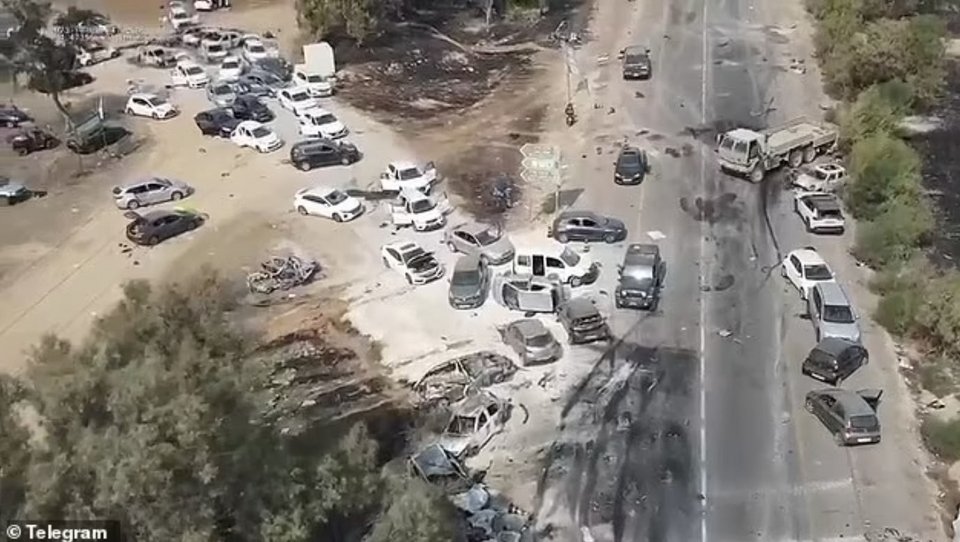 Δεκάδες αυτοκίνητα εγκαταλείφθηκαν αφού οι τρομοκράτες εισέβαλαν στο φεστιβάλ Nova κοντά στο κιμπούτς Re'im, στα σύνορα με τη Λωρίδα της Γάζας, το πρωί του Σαββάτου.