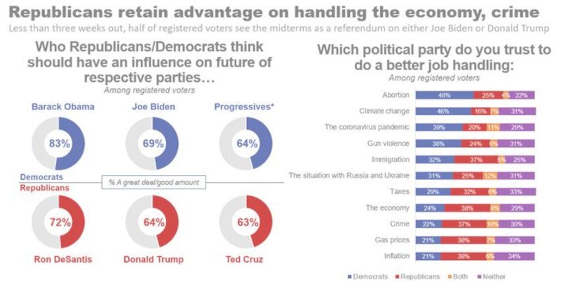 Ο Ντε Σάντις θεωρείται από πολλούς φαβορί για την επανεκλογή του στις ενδιάμεσες εκλογές της επόμενης εβδομάδας στις ΗΠΑ, όμως όσον αφορά στις προεδρικές του φιλοδοξίες, θα χρειαστεί μεν στο πλευρό του τον Τραμπ - που ετοιμάζεται, ωστόσο, να διεκδικήσει μια νέα θητεία στον Λευκό Οίκο -, αλλά ταυτόχρονα να κρατήσει αρκετές αποστάσεις από τον πρώην πρόεδρο των ΗΠΑ, ώστε να προσεταιριστεί εκείνους τους Ρεπουμπλικανούς ψηφοφόρους που του έχουν γυρίσει την πλάτη.