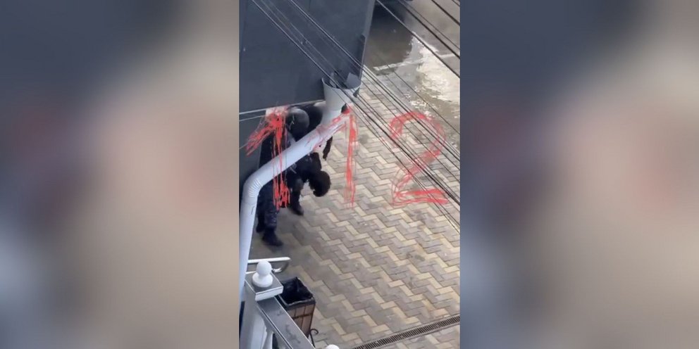 Βίντεο που αναρτήθηκαν στα μέσα κοινωνικής δικτύωσης, των οποίων τη γνησιότητα δεν κατέστη δυνατό να επαληθεύσει το Γαλλικό Πρακτορείο, δείχνουν έναν νεαρό, που φορά μαύρα ρούχα, έχει τα χέρια ψηλά μπροστά από την είσοδο του σχολείου, του οποίου η πρόσοψη είναι διακοσμημένη με φωτογραφίες που τιμούν τη νίκη των Σοβιετικών επί της ναζιστικής Γερμανίας.