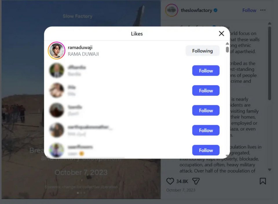 Μια άλλη ανάρτηση που φέρεται να έκανε «like» η Ντουουάτζι αφορούσε επίσης τη διαδήλωση της επόμενης ημέρας και είχε τη λεζάντα: «Από τον ποταμό μέχρι τη θάλασσα, η Παλαιστίνη θα είναι ελεύθερη».