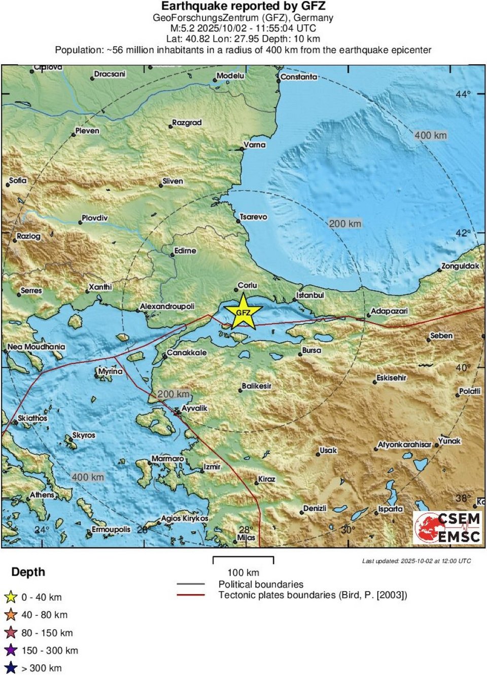 Από την πλευρά του το Ευρωμεσογειακό Ινστιτούτο κάνει λόγο για δόνηση 5 Ρίχτερ που σημειώθηκε 18 χιλιόμετρα νότια του Μαρμαρά και είχε εστιακό βάθος 13 χιλιόμετρα.