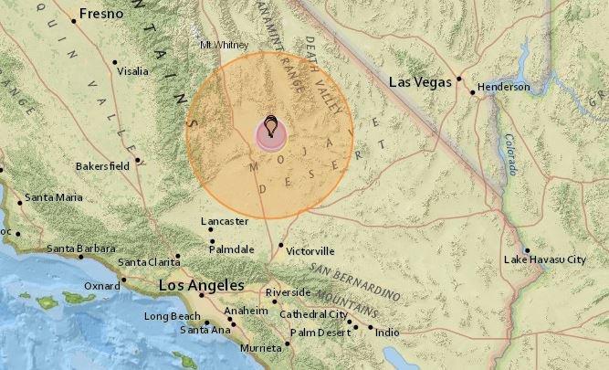 Σύμφωνα με το Ευρωπαϊκό Μεσογειακό Σεισμολογικό Κέντρο, σεισμός των 5,5 Ρίχτερ, εντοπίστηκε σε απόσταση 210 χιλιομέτρων βορειοανατολικά του Λος Άντζελες, με το εστιακό βάθος του να υπολογίζεται στα 47 χιλιόμετρα.