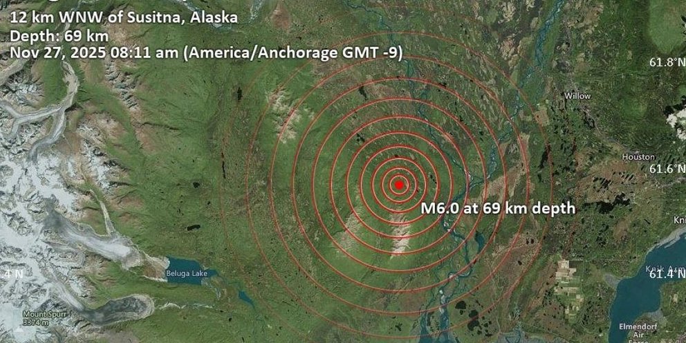 Σεισμός μεγέθους 6,0 βαθμών της κλίμακας Ρίχτερ σημειώθηκε στην Αλάσκα, όπως ανακοίνωσε η Γεωλογική Υπηρεσία των Ηνωμένων Πολιτειών (USGS).