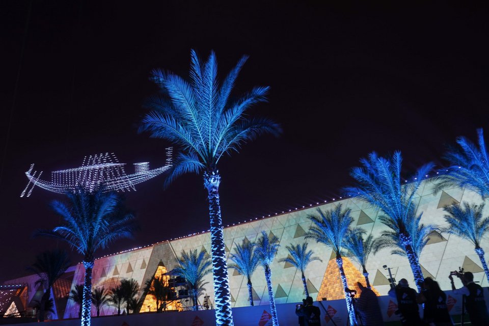 Ο πρόεδρος της Αιγύπτου Άμπντελ Φάταχ αλ Σίσι εγκαινίασε απόψε με κάθε λαμπρότητα το Μεγάλο Αιγυπτιακό Μουσείο ...κλέβοντας την παράσταση με ένα εντυπωσιακό σκηνικό που έφτιαξαν εκατοντάδες drones.