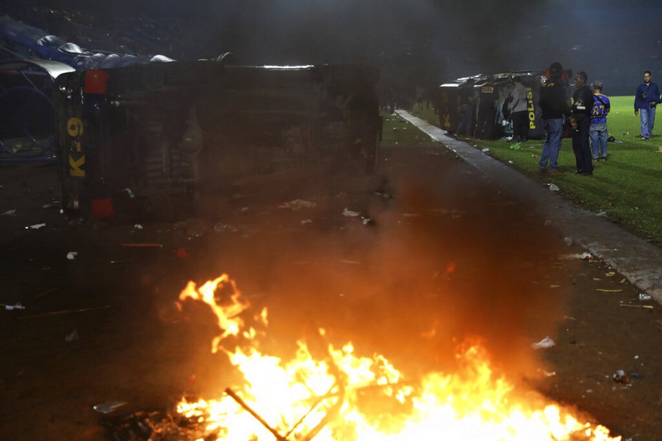 Οι οπαδοί των ιαβανέζικων συλλόγων και μακροχρόνιων αντιπάλων Arema και Persebaya Surabaya συγκρούστηκαν μετά την ήττα της Arema με 3-2 στον αγώνα στην περιφέρεια Malang, στην Ανατολική Ιάβα της Ινδονησίας.