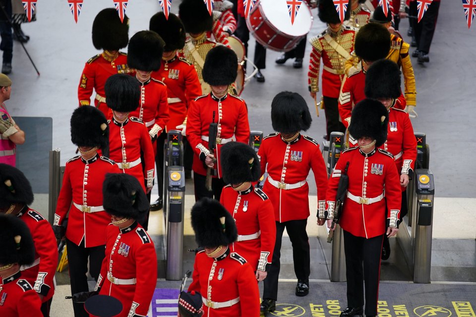 Ένα παράξενο θέαμα παρακολούθησαν σήμερα οι επιβάτες του μετρό του Λονδίνου, καθώς πάνω από 5.000 μέλη των ενόπλων δυνάμεων ταξίδεψαν με το τρένο για το σταθμό Waterloo, προκειμένου να πάρουν τις θέσεις τους για τη στέψη του βασιλιά Καρόλου.