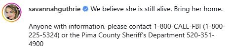 Η Σαβάνα Γκάθρι ανήρτησε τις νέες εικόνες στο Instagram, με τη λεζάντα: «Πιστεύουμε ότι είναι ακόμη ζωντανή. Φέρτε την στο σπίτι».